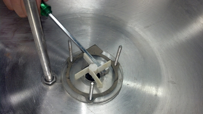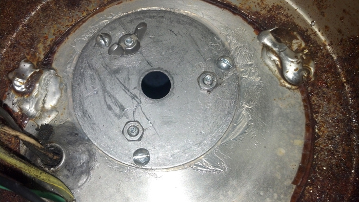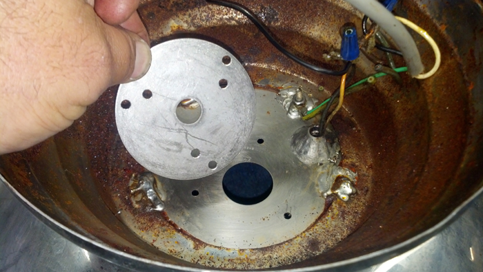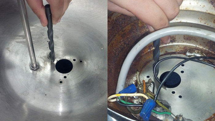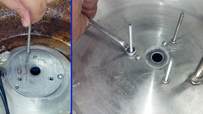 adapter plate and deburr the new holes in the bowl using a larger drill