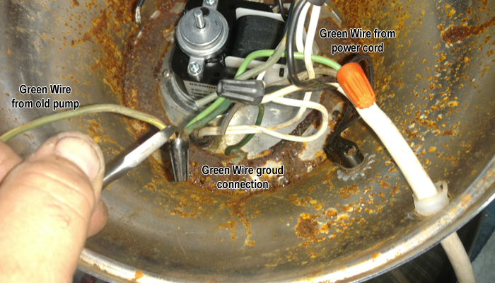 cut the old pump wire at the wire nut or BE SURE THE GREEN WIRE FROM THE POWER CORD IS GROUNDED TO THE METAL PART OF THE FOUNTAIN