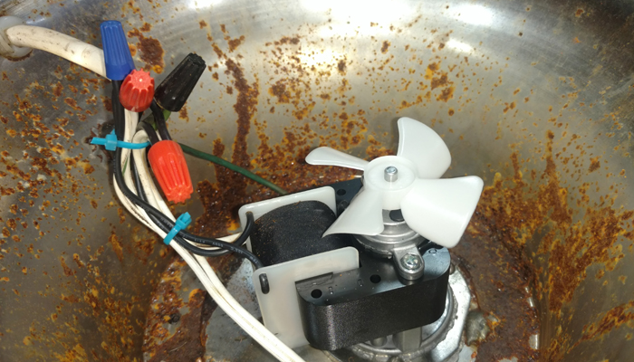 Make sure all the wire nuts are tight and no exposed wire is visible. Install the cooling fan and tie the wires together away form the fan. The fan provides adequate cooling just circulating the air inside the base. No vent holes are required. Be sure to properly install your original base cover. |