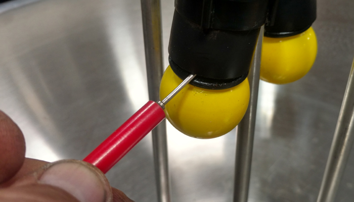 One probe on the white wire cluster. |