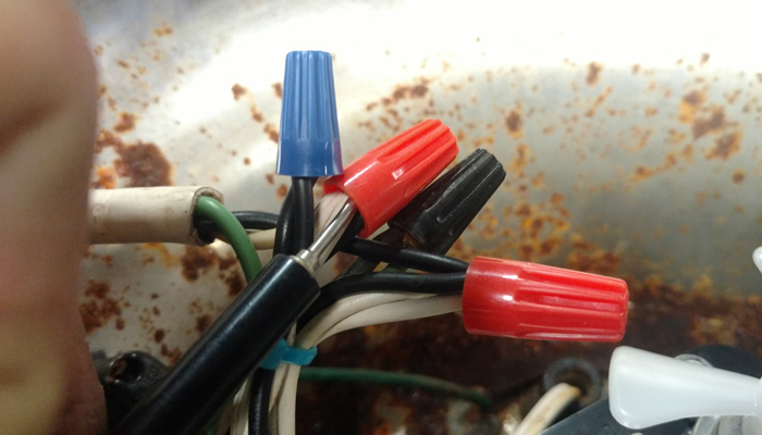 Now find the wires that you cut from the old pump. These may be brown, blue, green, black, or red. Most important is the green