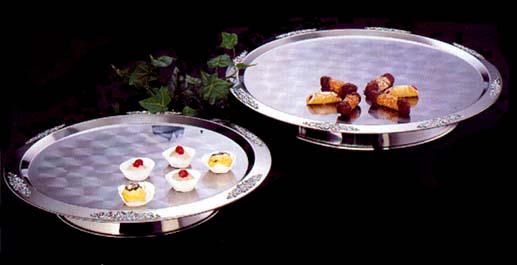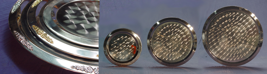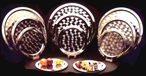 Stainless Steel Party Trays in 10, 15, 20, & 25 inch. Made in U.S.A. from heavy gauge, non magnetic Stainless steel.